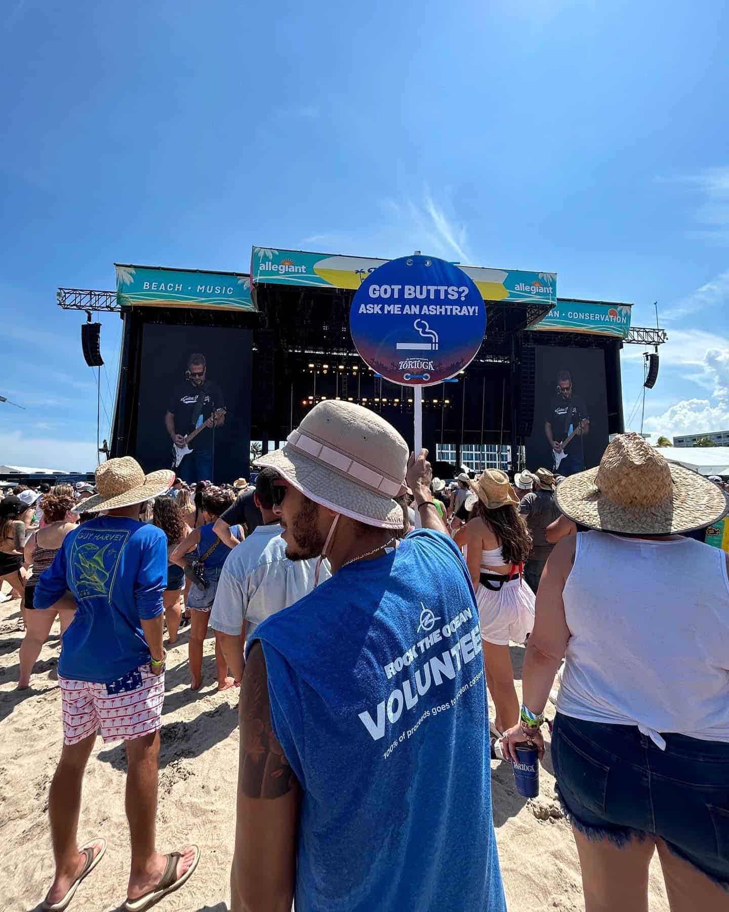 VolunteerCleanup.Org hands out reusable pocket ashtrays to smokers at music festivals, events, tobacco shops and while walking down the street. We approach mid-smoke with a smile and a very simple ‘Hey friend, here is a free pocket ashtray for you so you have a good place to put your butt when you are done.’ While that might be the end of the engagement, the conversation is just beginning. The messaging on the pocket ashtray educates them that their butts are not biodegradable (butts are made of cellulose plastic), and that cigarette litter washes down the storm drains and straight out to waterways. What they do after that is up to them.